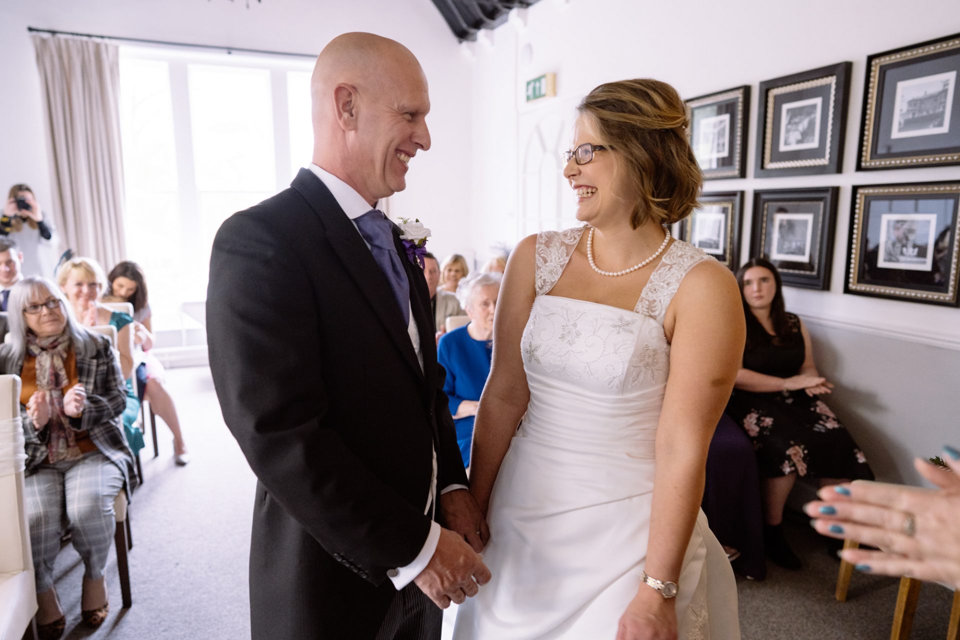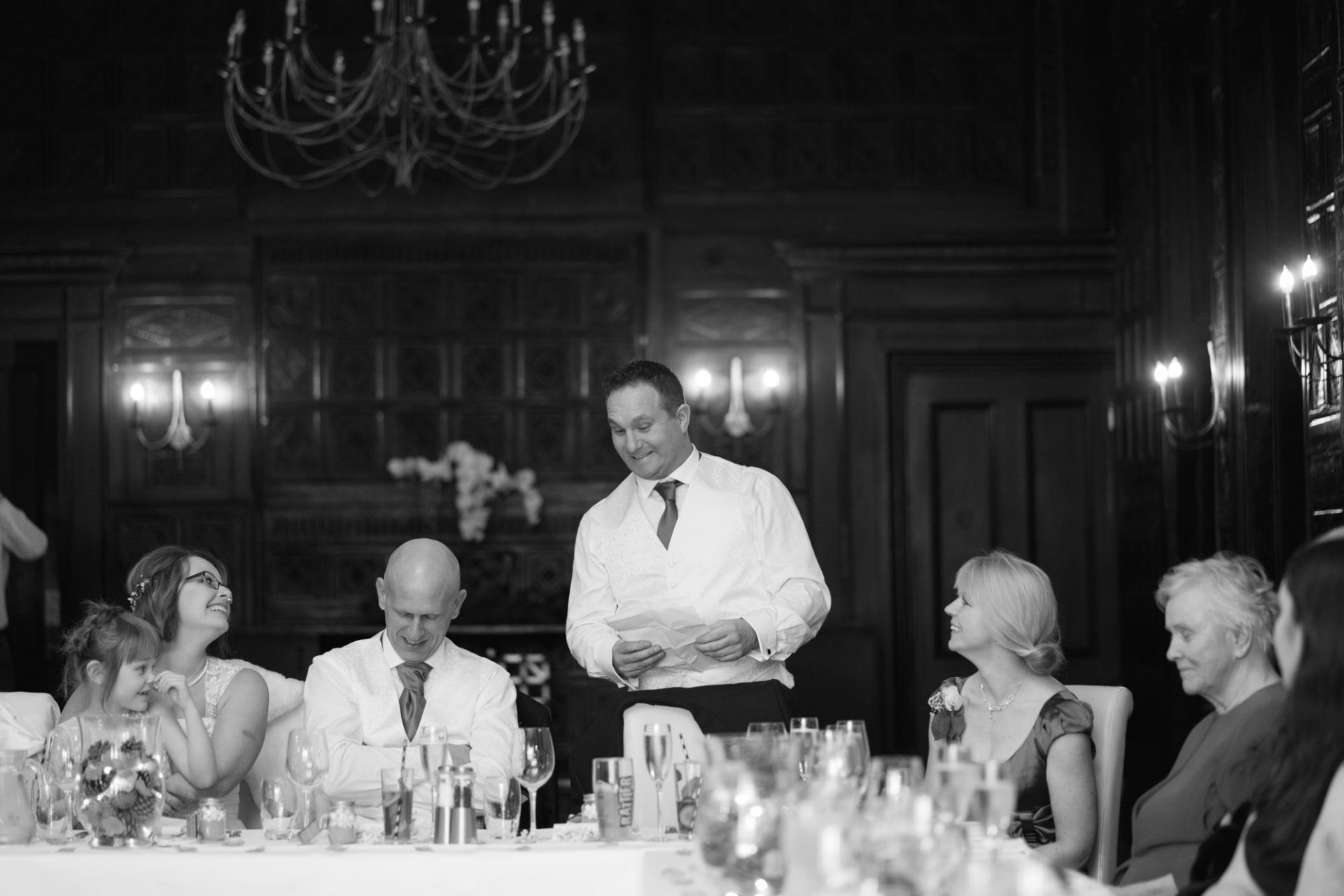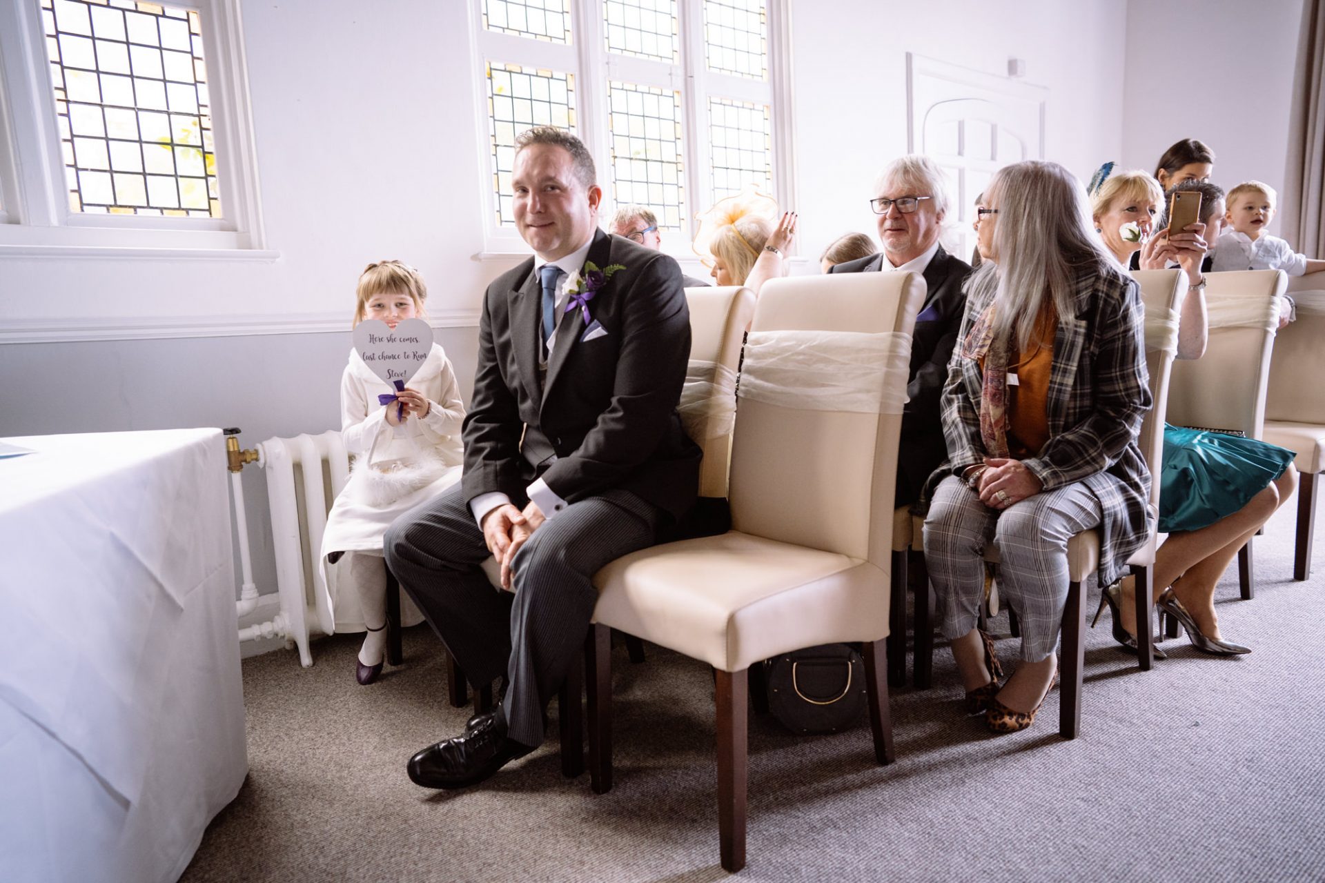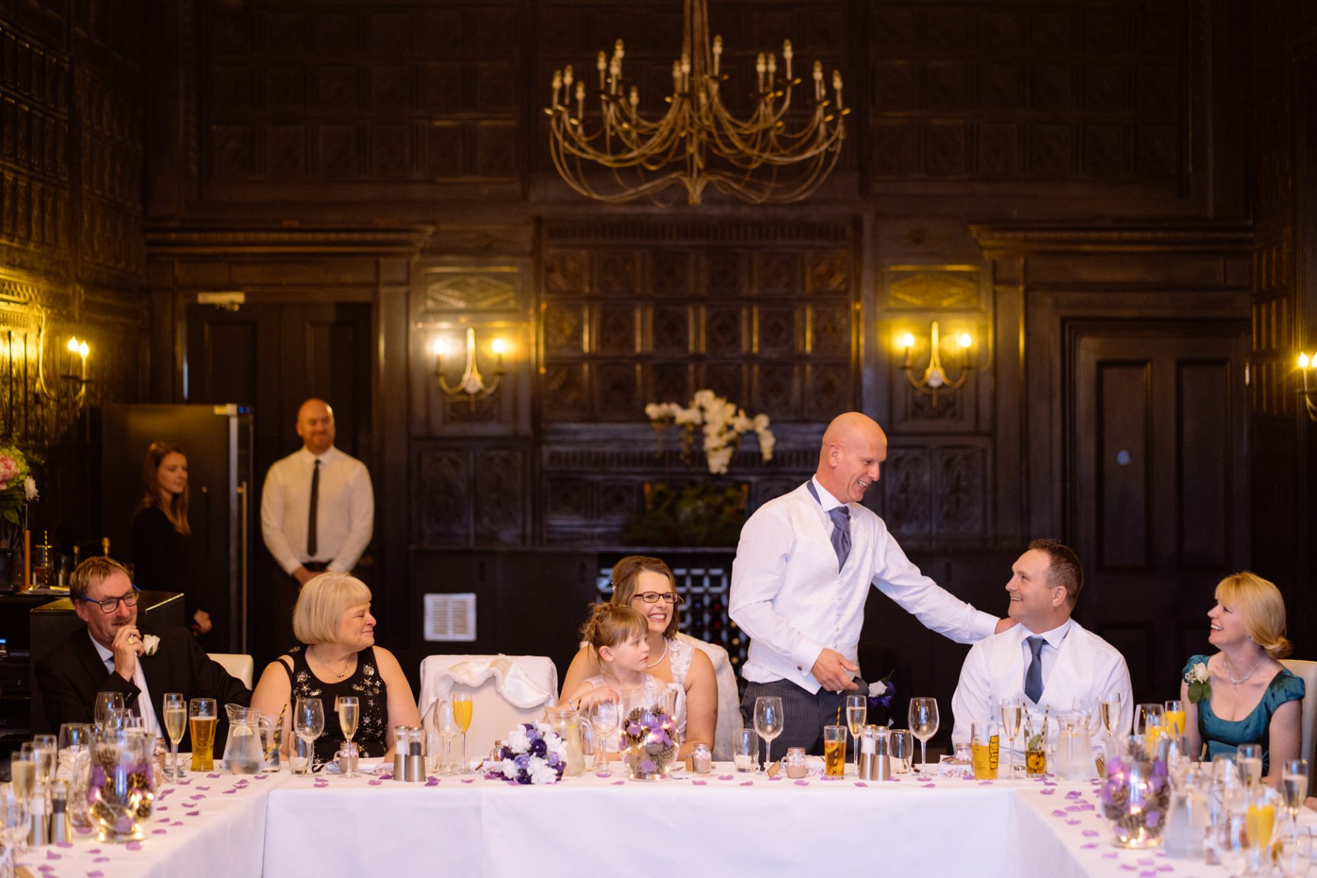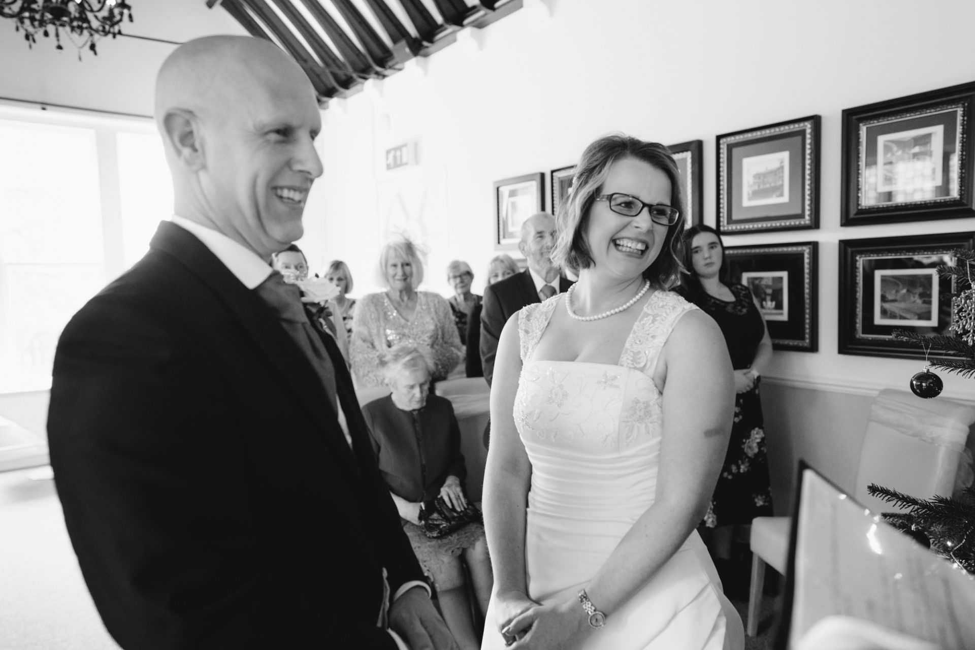 Safely suited and booted (and emergency tied!), Steve and his best man waited in the chapel. My second shooter Kirsty followed Sam down the grand staircase as she prepared to make her entry. The assembled congregation held their collective breath. On cue, the music began. Sam’s mum and daughter entered followed by Sam herself. I think you can safely say everyone was stunned at how amazing she looked!