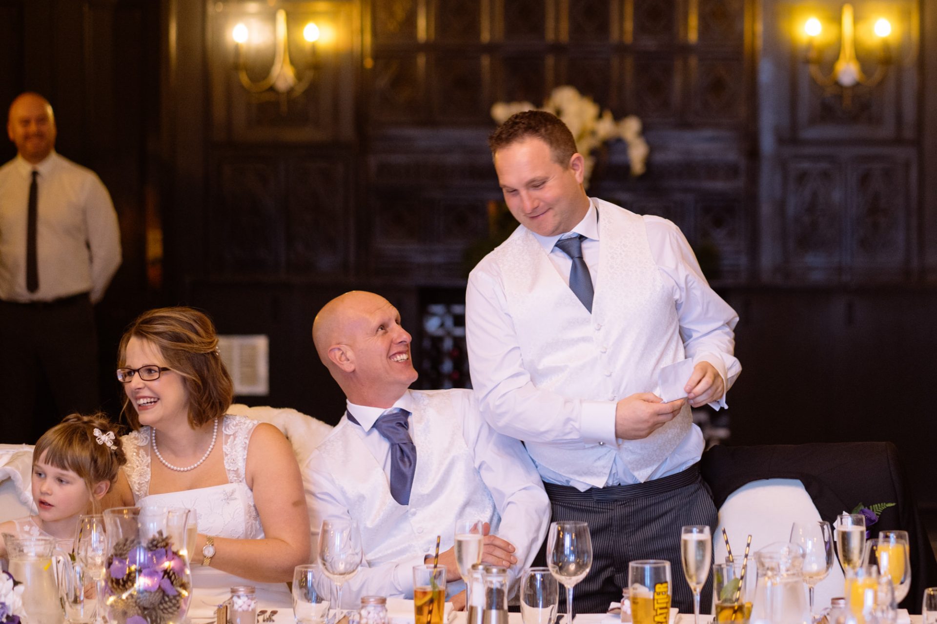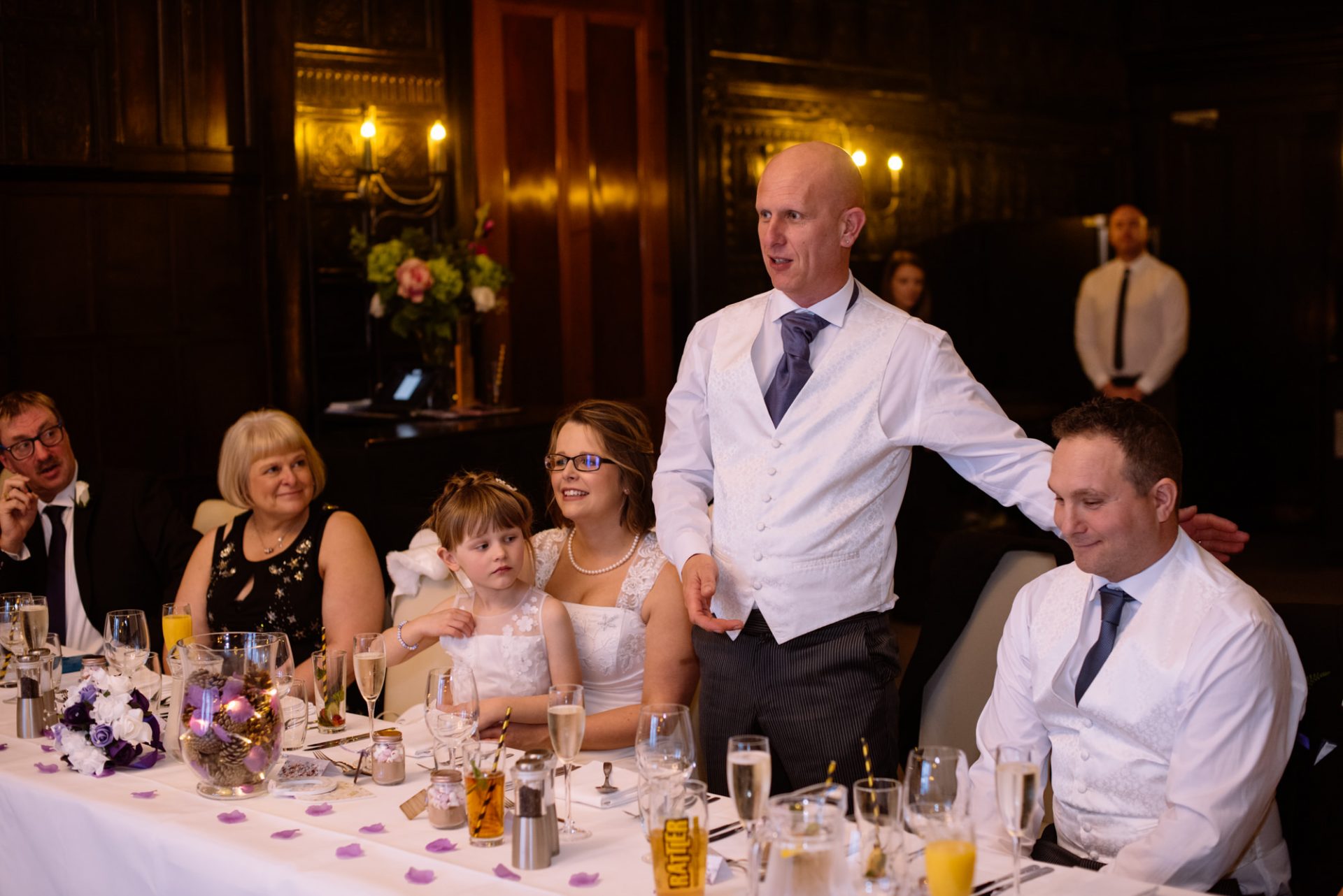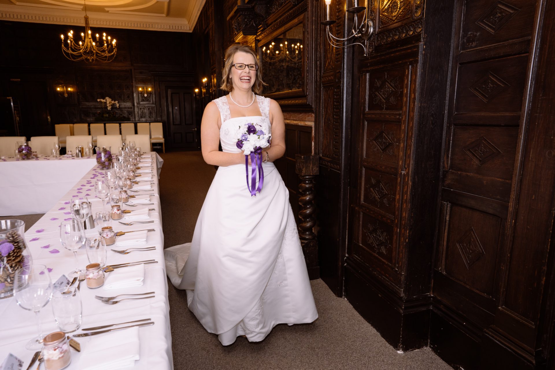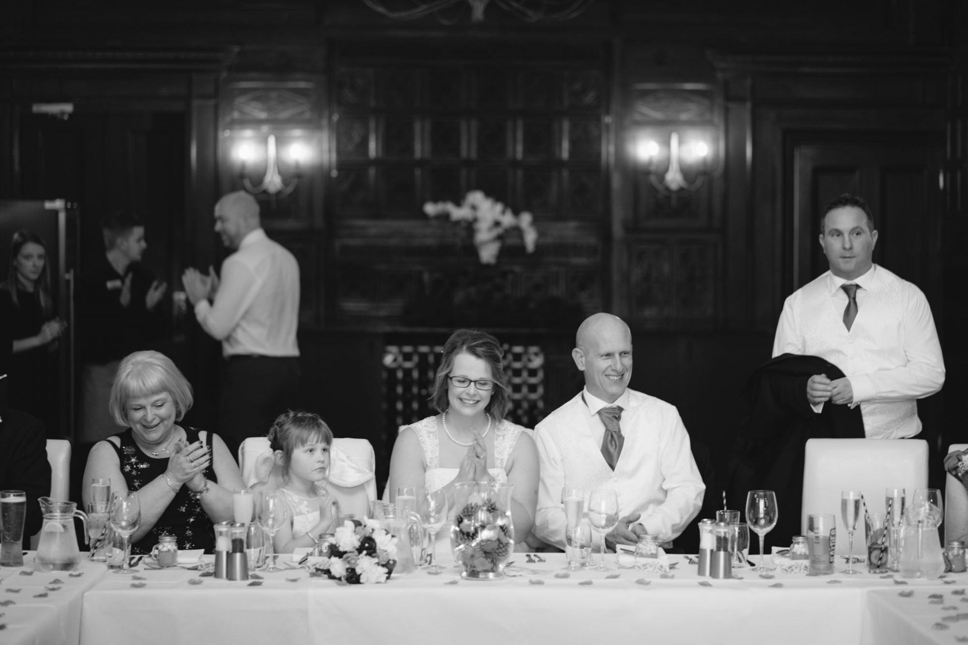 Safely suited and booted (and emergency tied!), Steve and his best man waited in the chapel. My second shooter Kirsty followed Sam down the grand staircase as she prepared to make her entry. The assembled congregation held their collective breath. On cue, the music began. Sam’s mum and daughter entered followed by Sam herself. I think you can safely say everyone was stunned at how amazing she looked!