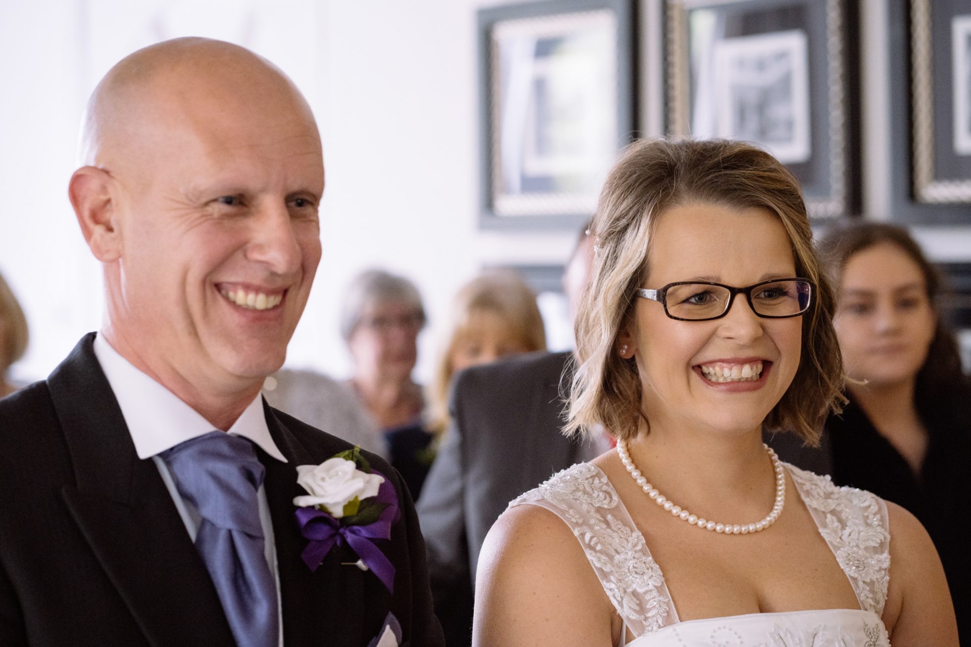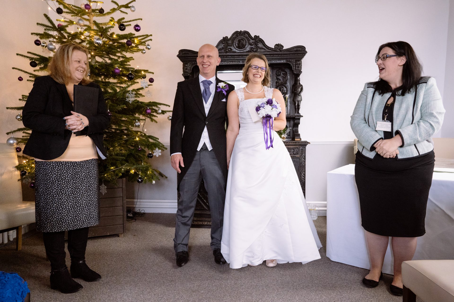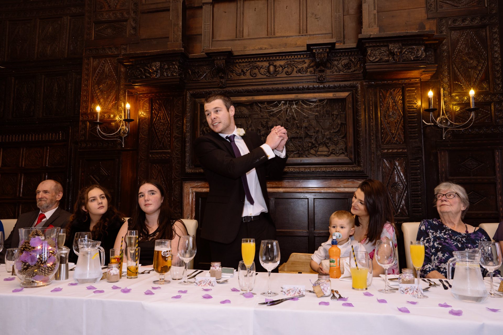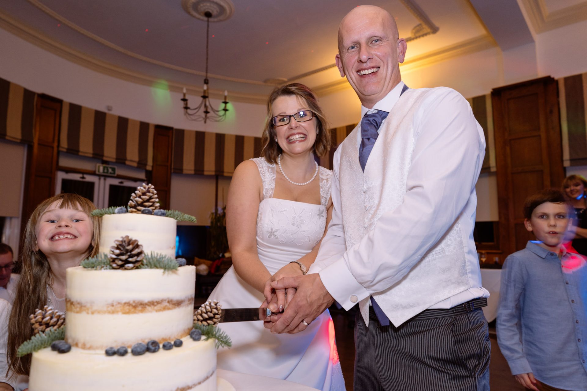 Safely suited and booted (and emergency tied!), Steve and his best man waited in the chapel. My second shooter Kirsty followed Sam down the grand staircase as she prepared to make her entry. The assembled congregation held their collective breath. On cue, the music began. Sam’s mum and daughter entered followed by Sam herself. I think you can safely say everyone was stunned at how amazing she looked!