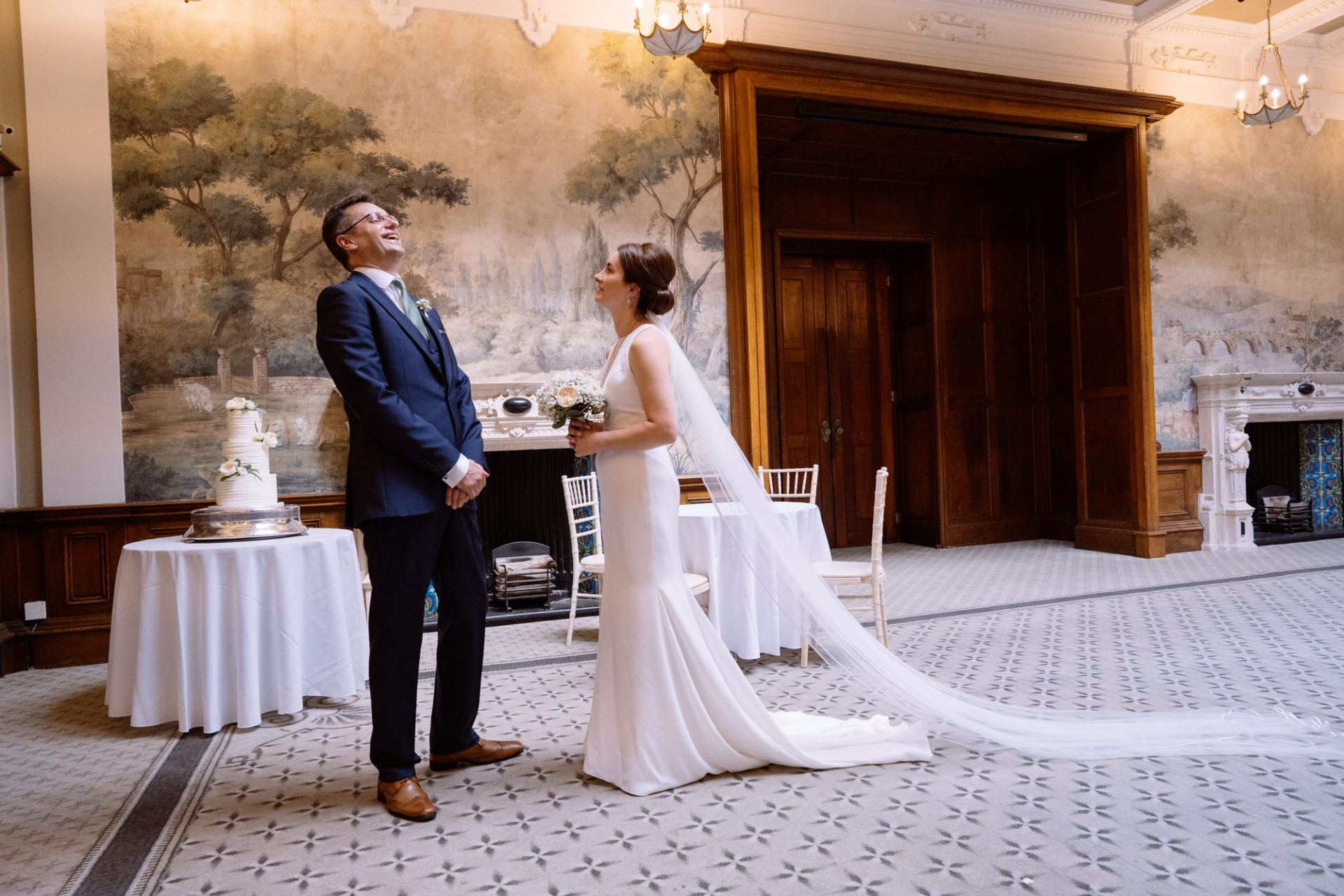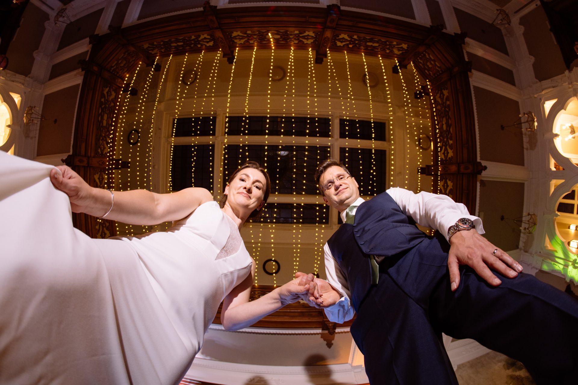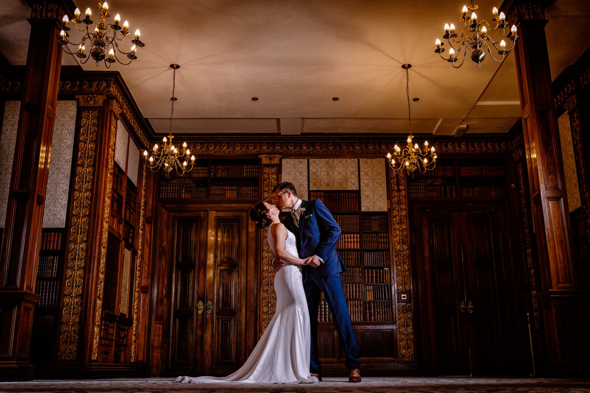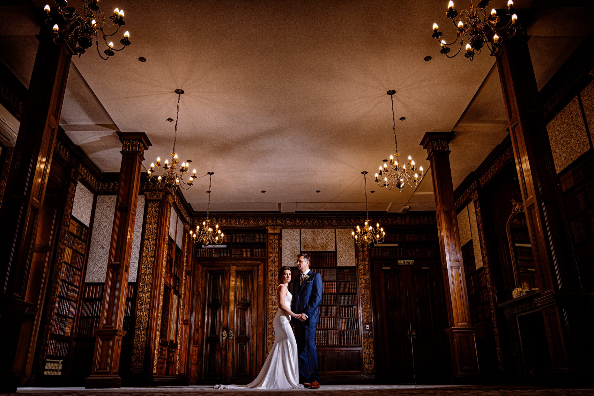 Myself and Matt work well together, I shoot documentary images and help light the wedding portraits. Consequently, I found myself holding a pole with Matt’s flash lighting on the end high above Zuzanna in Clevedon Hall’s library. This would produce a ‘Hollywood style’ lighting effect inkeeping with Matt’s style of photography. Matt was chatting away to Zuzanna and James as is his usual way, putting them at their ease whilst snapping off a few shots. My arms began to feel like two lead weights and were starting to shake. Howerver, Matt was still chatting and snapping. Luckily it wasn’t too long before we had the shots we wanted. Subsequently, I was happy to see that Zuzanna was over the moon with her images.