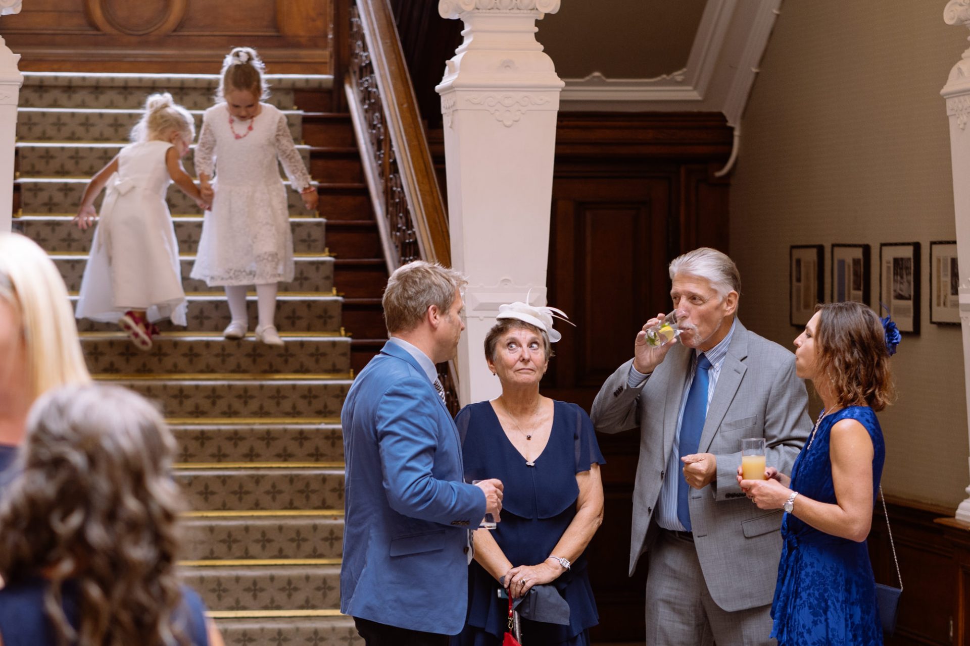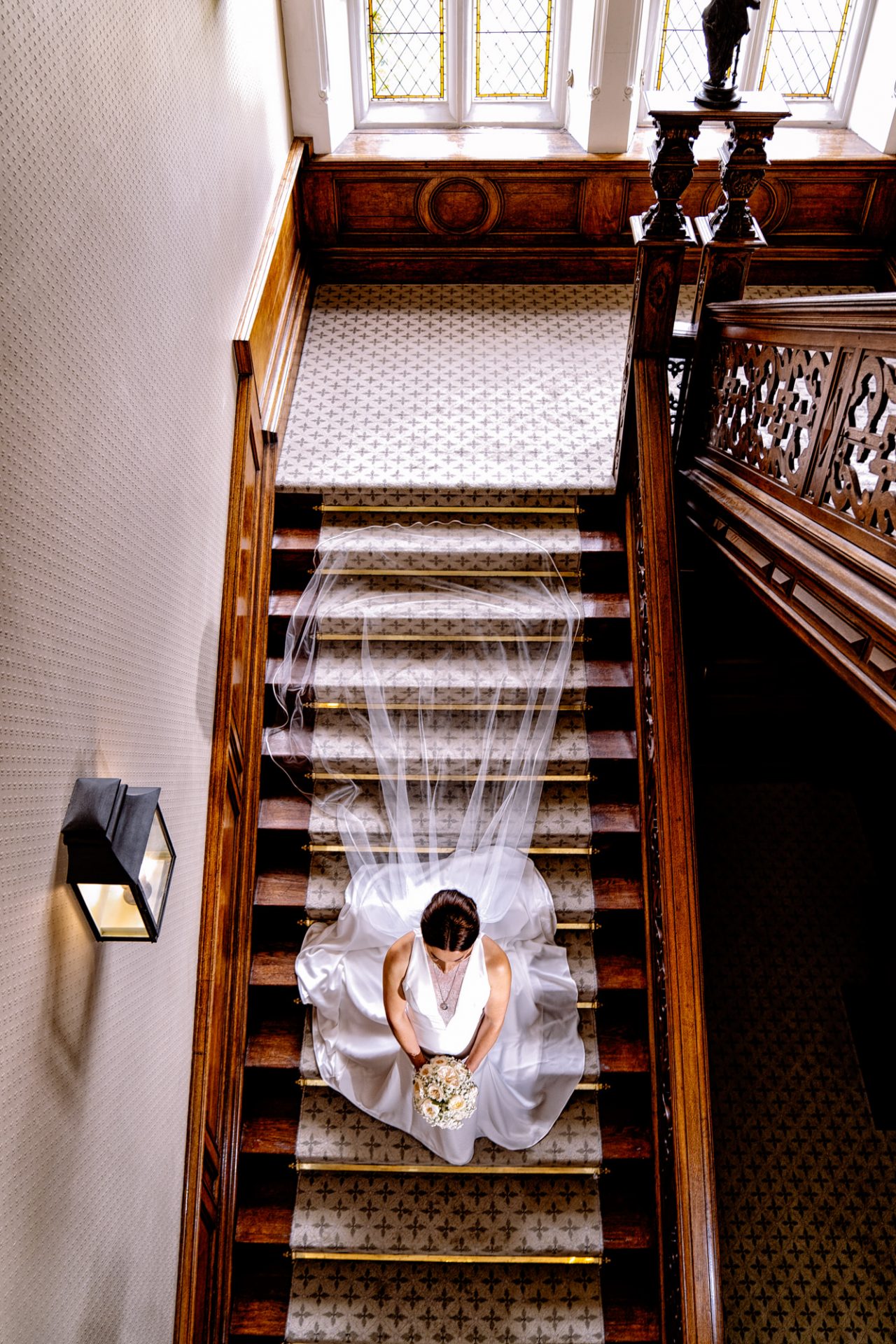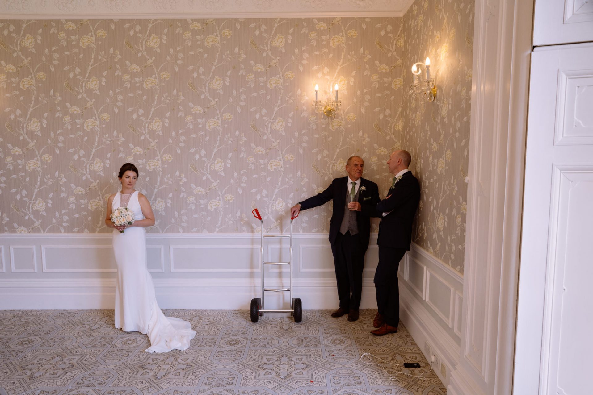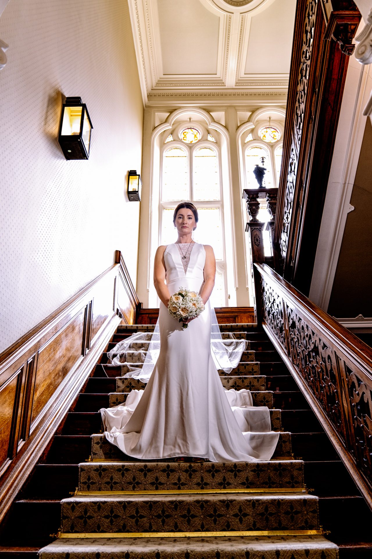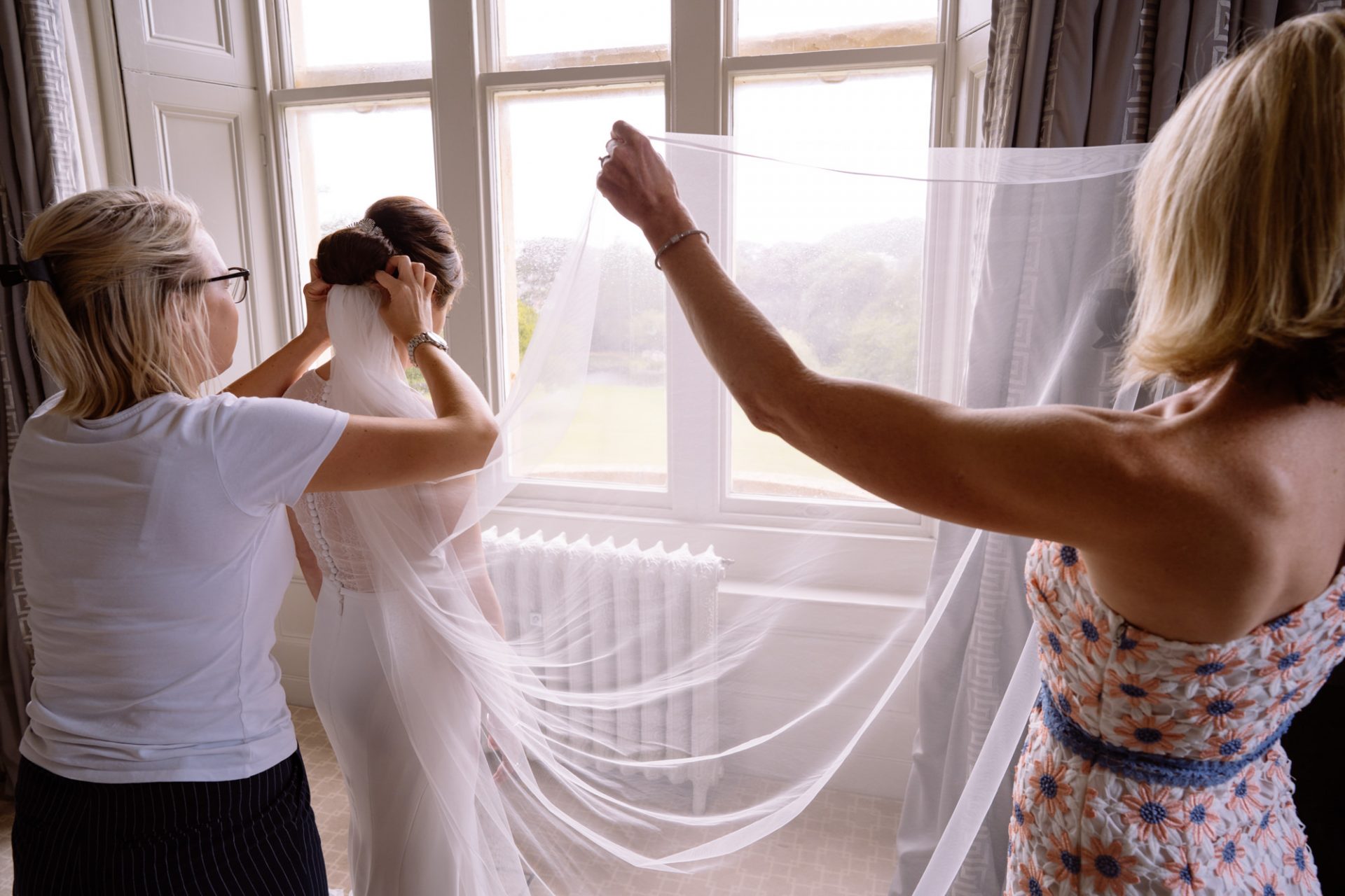 Myself and Matt work well together, I shoot documentary images and help light the wedding portraits. Consequently, I found myself holding a pole with Matt’s flash lighting on the end high above Zuzanna in Clevedon Hall’s library. This would produce a ‘Hollywood style’ lighting effect inkeeping with Matt’s style of photography. Matt was chatting away to Zuzanna and James as is his usual way, putting them at their ease whilst snapping off a few shots. My arms began to feel like two lead weights and were starting to shake. Howerver, Matt was still chatting and snapping. Luckily it wasn’t too long before we had the shots we wanted. Subsequently, I was happy to see that Zuzanna was over the moon with her images.