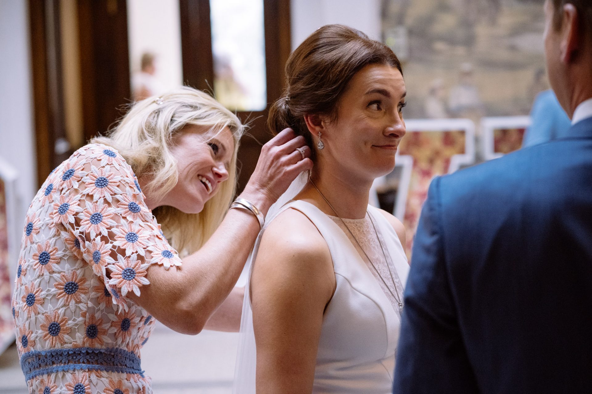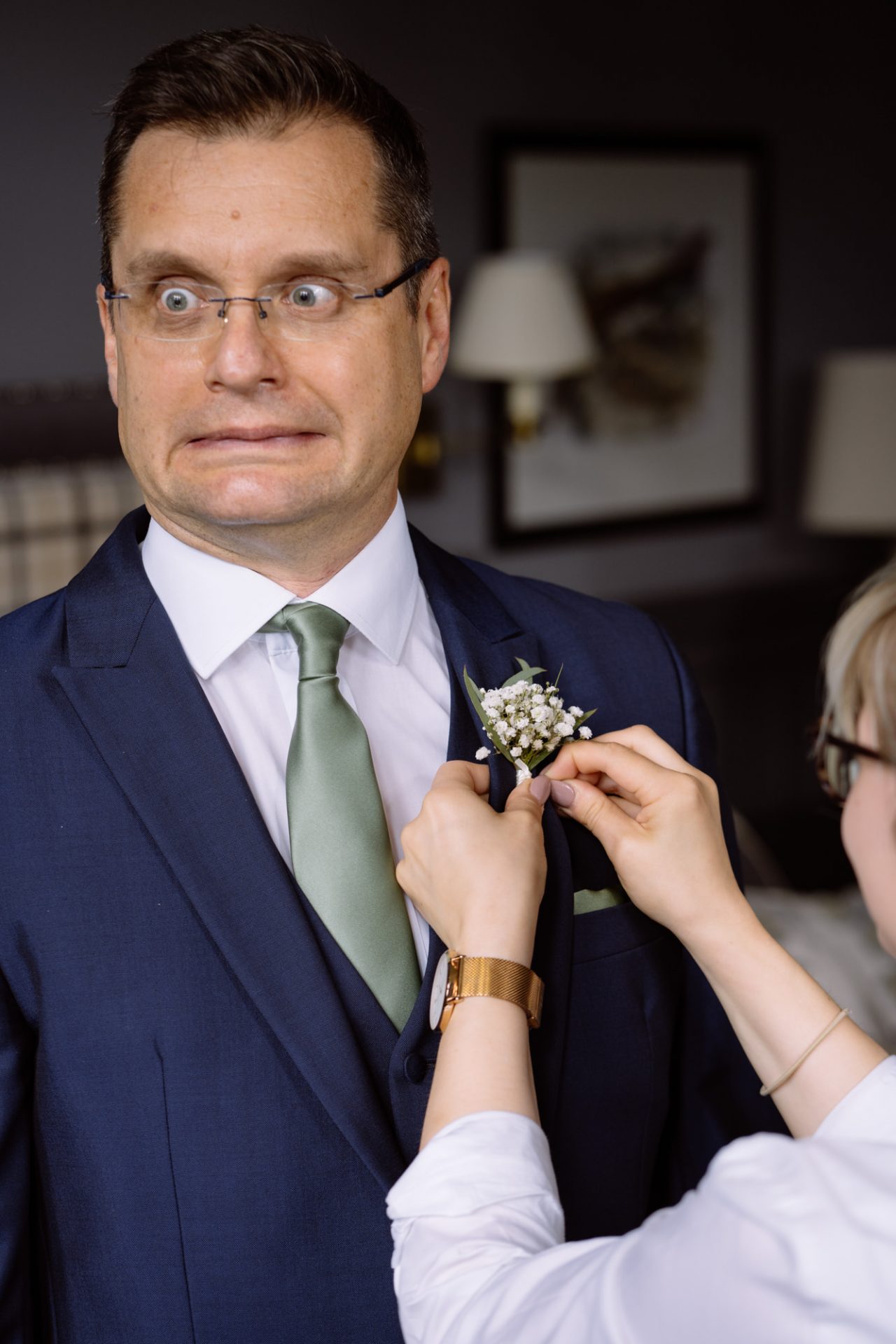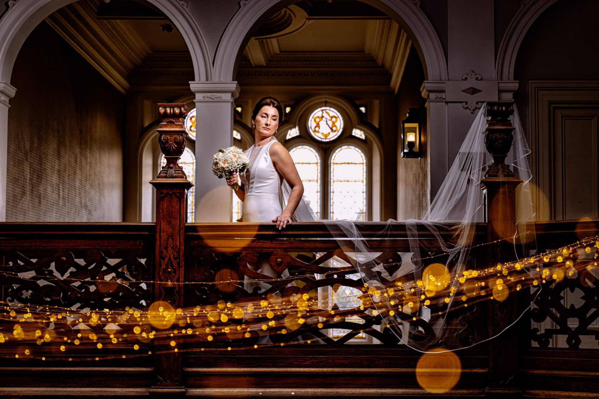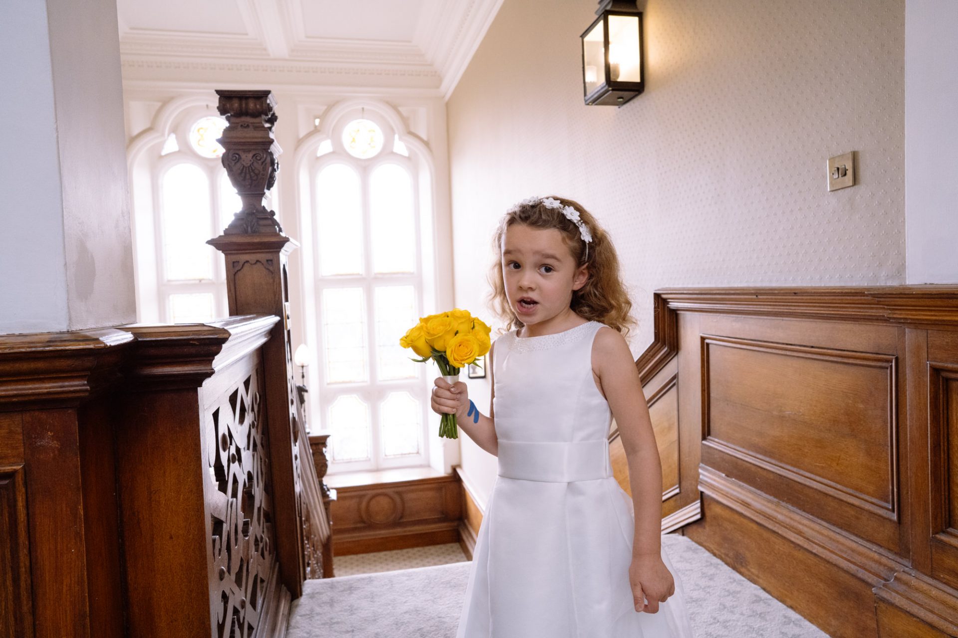 Myself and Matt work well together, I shoot documentary images and help light the wedding portraits. Consequently, I found myself holding a pole with Matt’s flash lighting on the end high above Zuzanna in Clevedon Hall’s library. This would produce a ‘Hollywood style’ lighting effect inkeeping with Matt’s style of photography. Matt was chatting away to Zuzanna and James as is his usual way, putting them at their ease whilst snapping off a few shots. My arms began to feel like two lead weights and were starting to shake. Howerver, Matt was still chatting and snapping. Luckily it wasn’t too long before we had the shots we wanted. Subsequently, I was happy to see that Zuzanna was over the moon with her images.