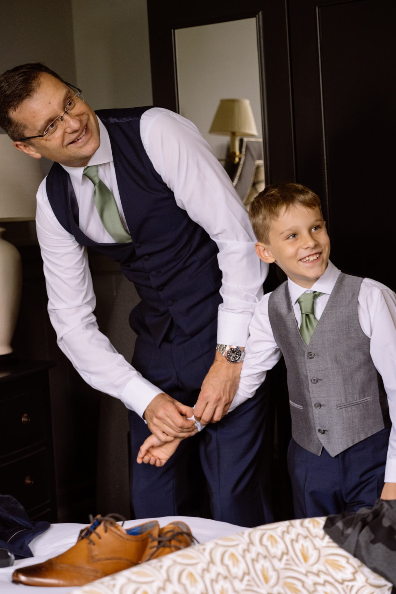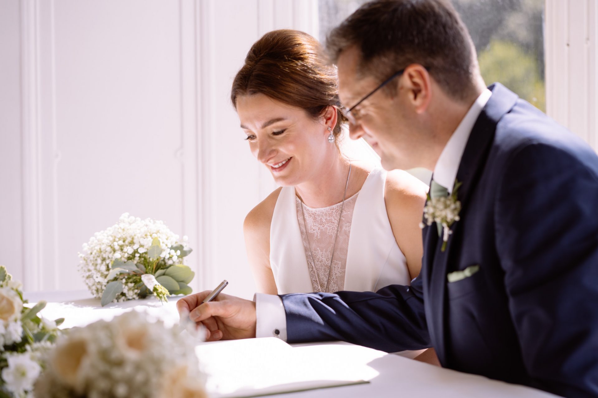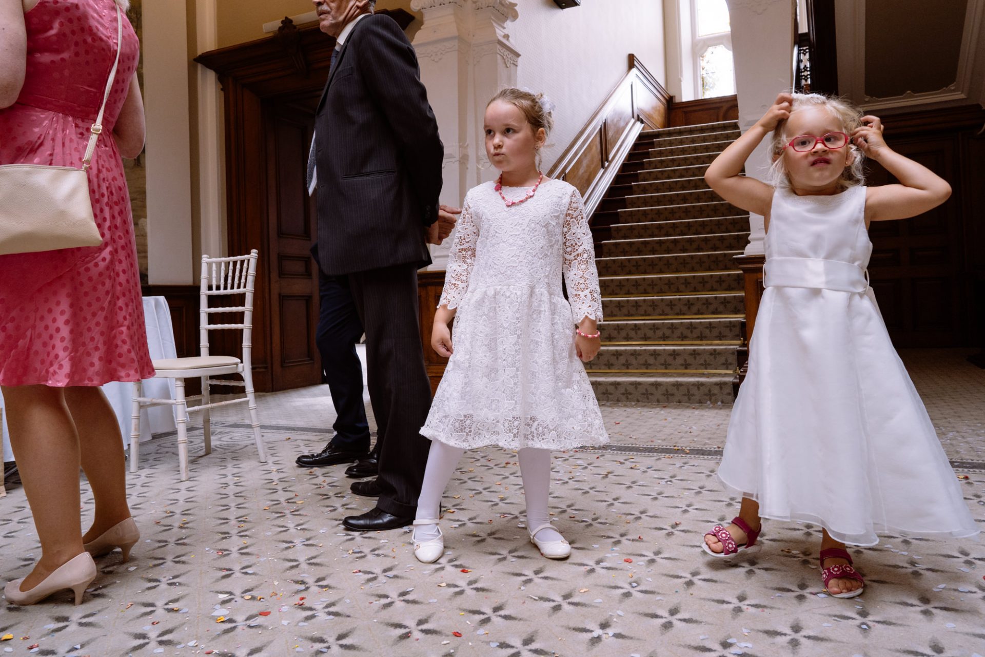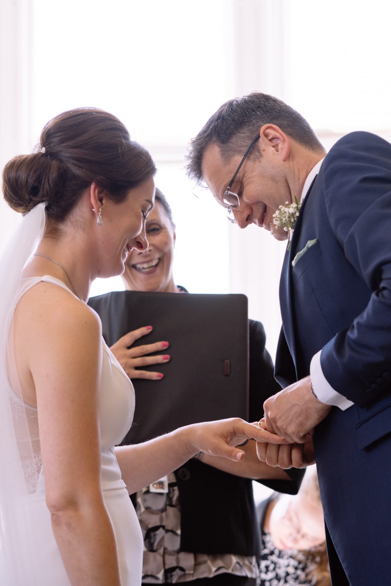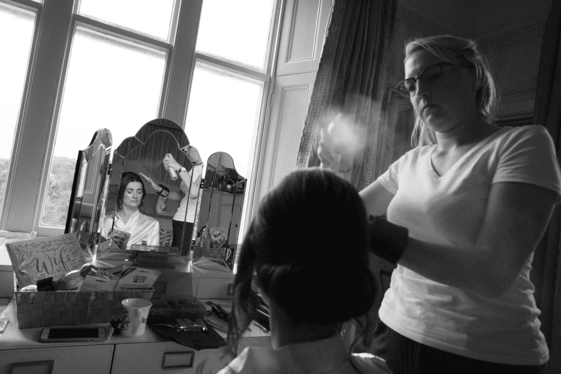 Myself and Matt work well together, I shoot documentary images and help light the wedding portraits. Consequently, I found myself holding a pole with Matt’s flash lighting on the end high above Zuzanna in Clevedon Hall’s library. This would produce a ‘Hollywood style’ lighting effect inkeeping with Matt’s style of photography. Matt was chatting away to Zuzanna and James as is his usual way, putting them at their ease whilst snapping off a few shots. My arms began to feel like two lead weights and were starting to shake. Howerver, Matt was still chatting and snapping. Luckily it wasn’t too long before we had the shots we wanted. Subsequently, I was happy to see that Zuzanna was over the moon with her images.