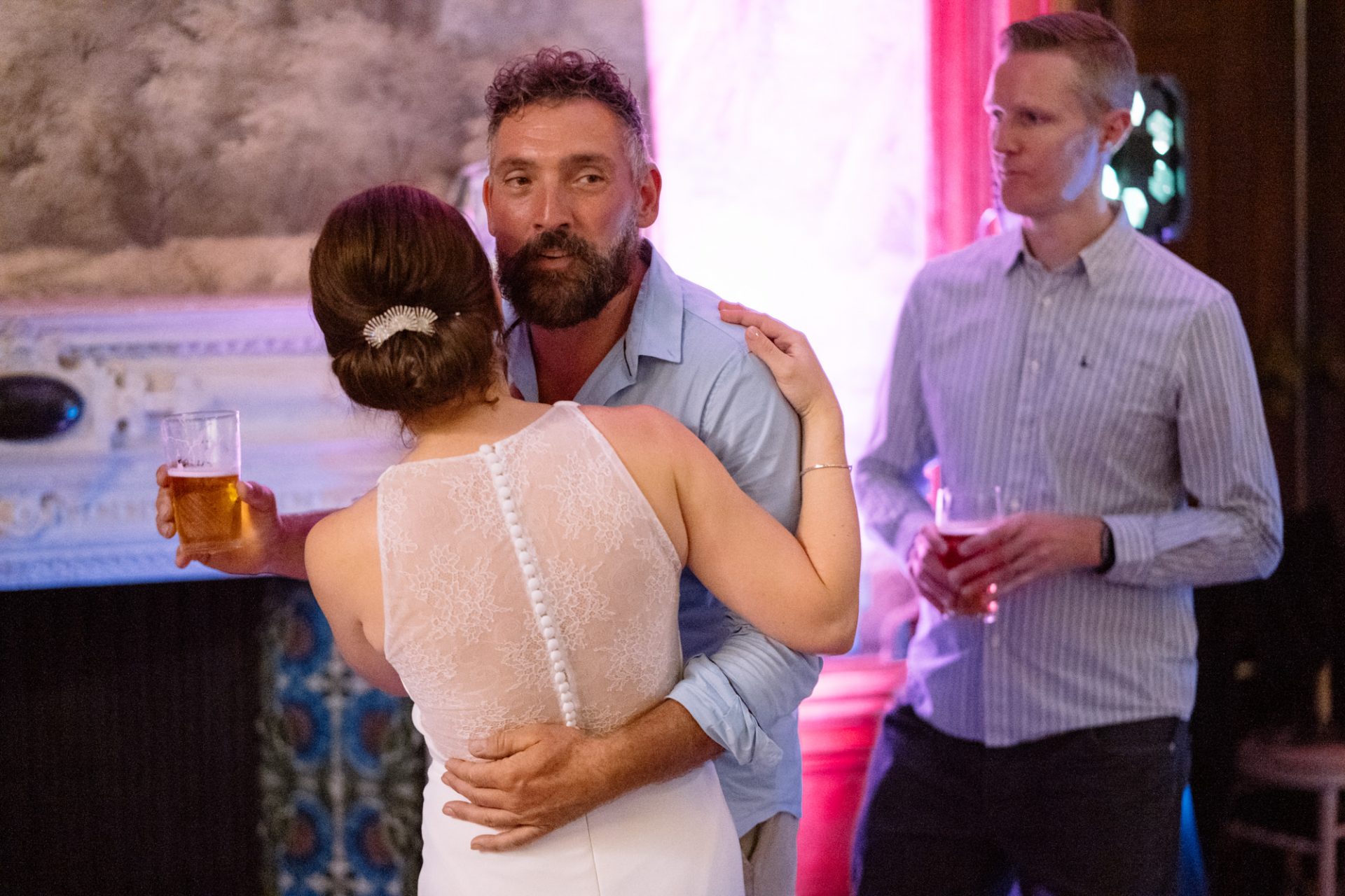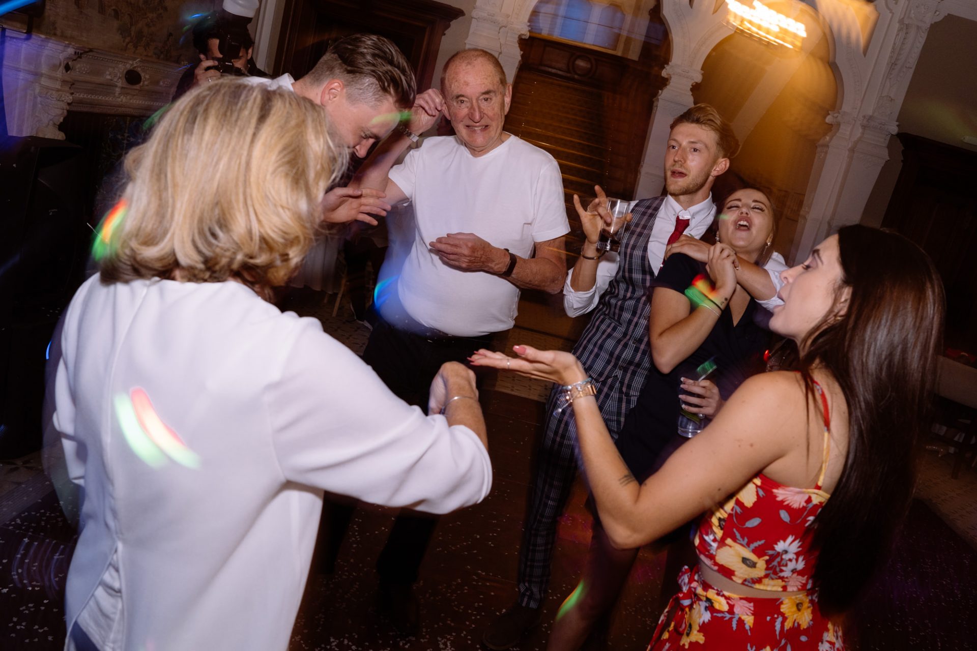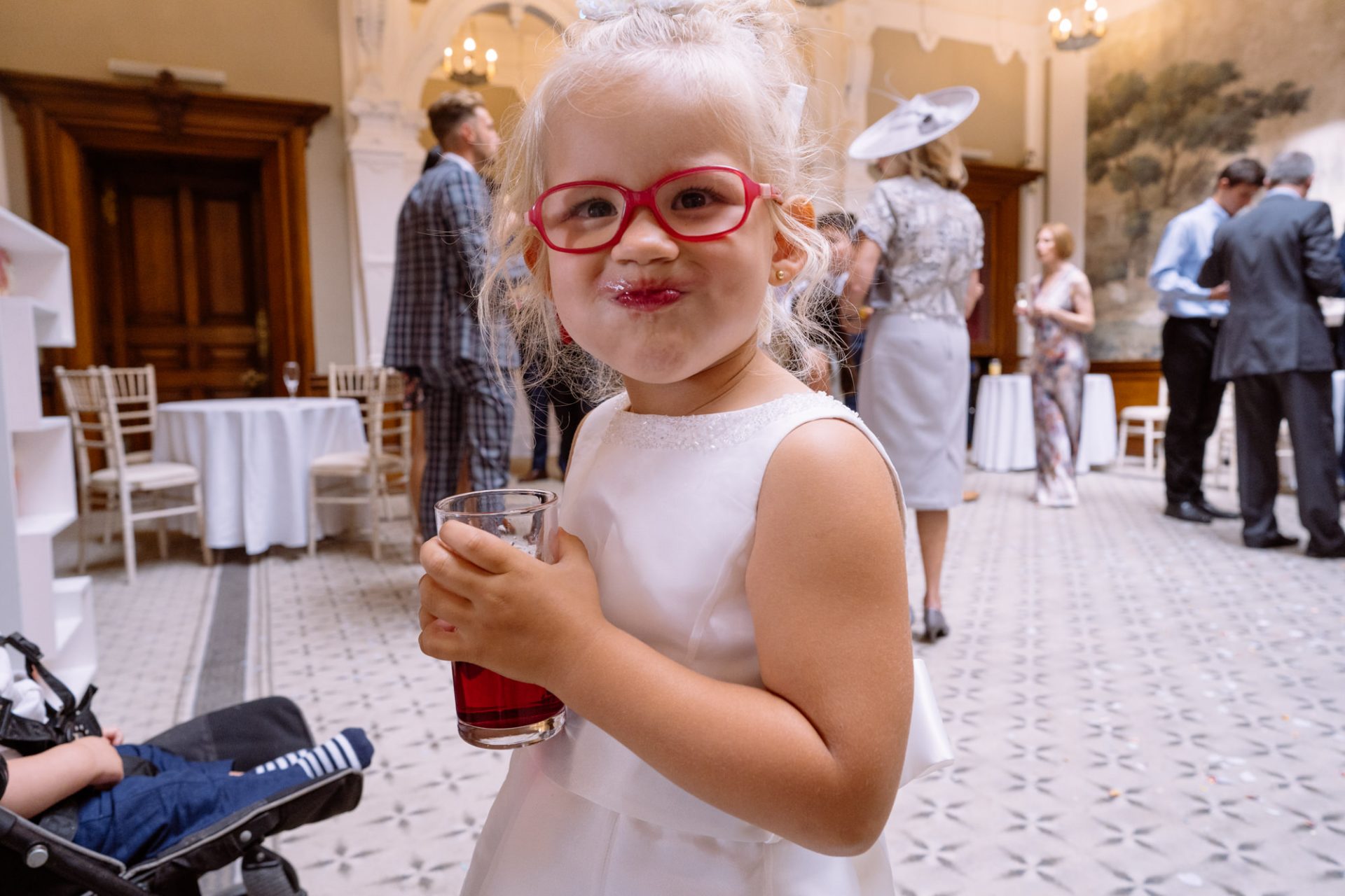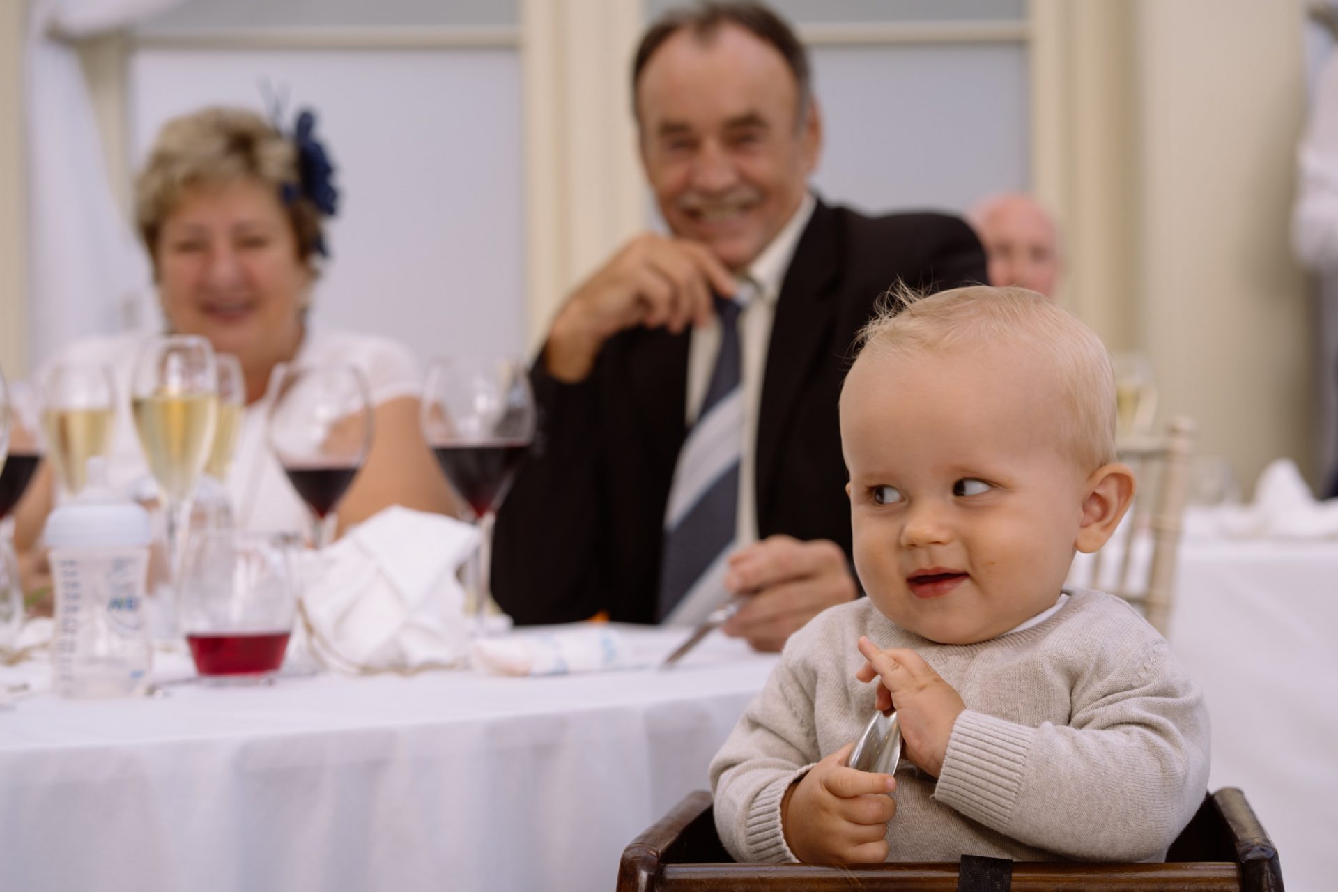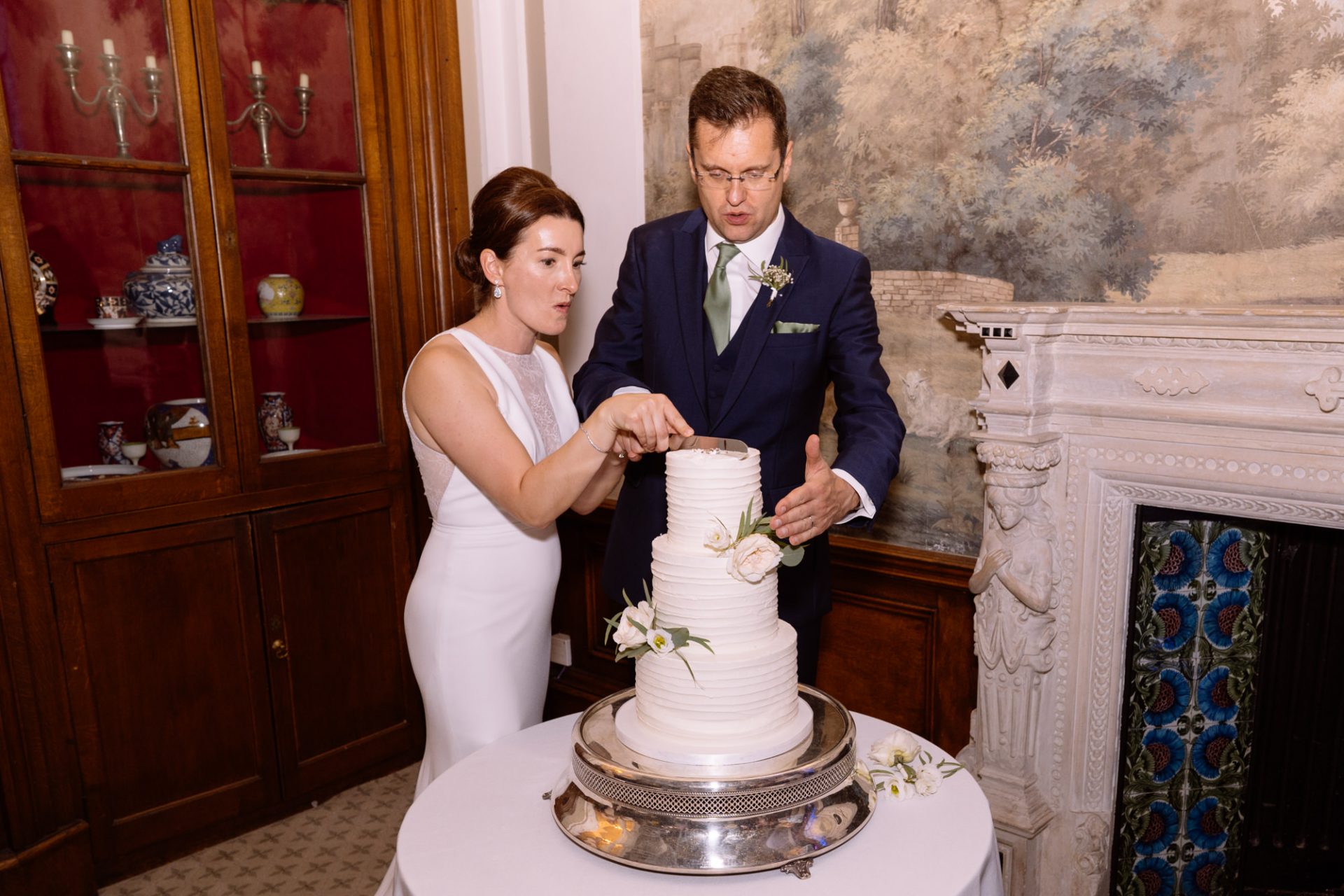 On a high from our pier shoot, Zuzanna, James, Matt and I returned to Clevedon Hall. After they had changed and made their big entrance, the first dance ensued. This went without a hitch, with James performing lifts that Torvill and Dean would have been proud of! However, it was during the cutting of the cake that proceedings took a turn for the worse. I snapped away as Zuzanna and James posed with the cake knife placed delicately atop the third tier. Their smiles radiated around the adoring onlookers. Therefore, when the actual incision was made no one expected the cake to wobble violently and almost disintegrate! Thankfully the staff were on hand to help avert disaster and distribute cake to the masses. I kept shooting throughout, capturing some amusing documentary images for the final edit.