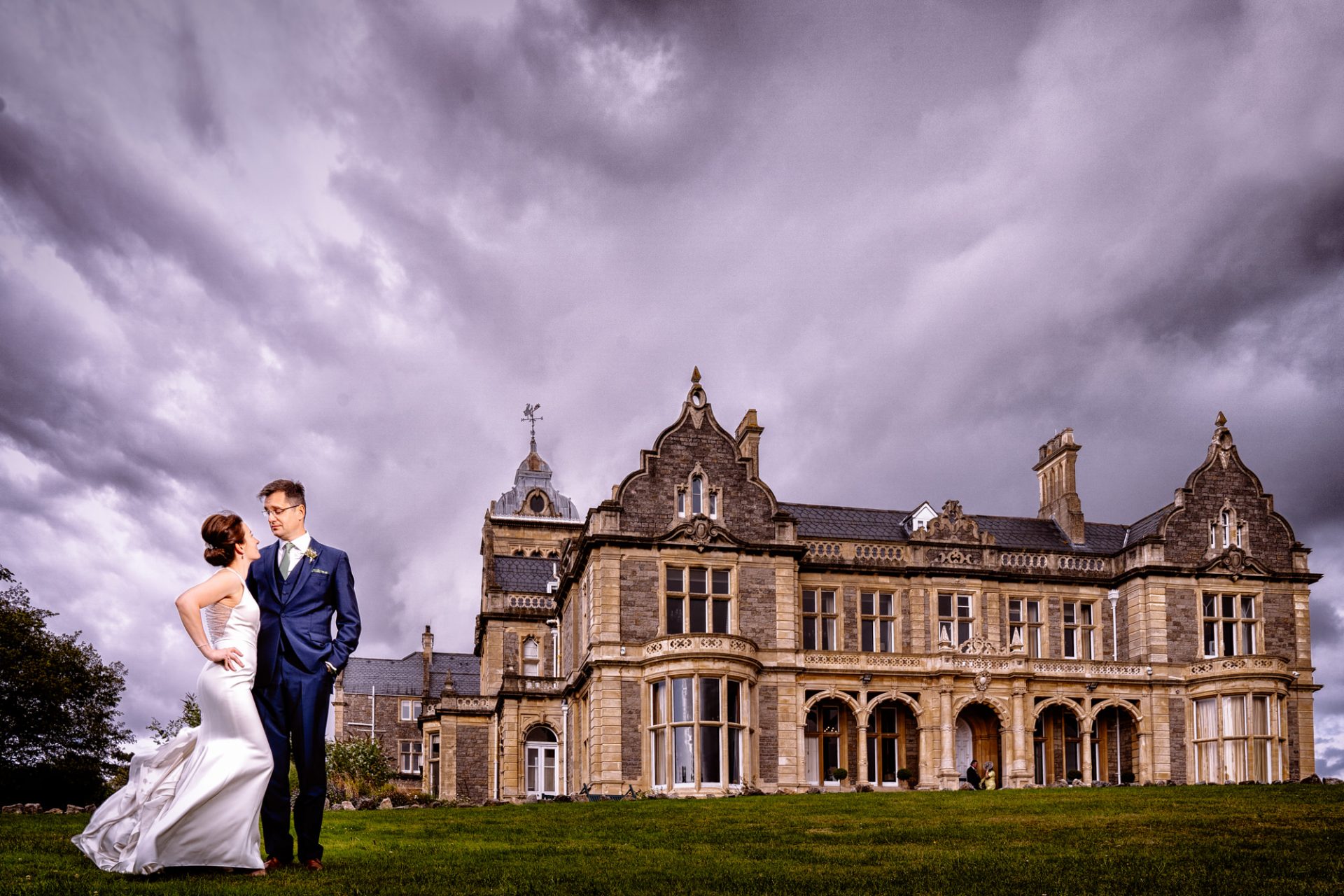 As mentioned earlier, the happy couple had booked themsleves an hour slot for photography on Clevedon Pier. Unfortunately, what they hadn’t reckoned with was the British weather! During the ceremony, the winds had picked up to gale force meaning the pier would have to be closed. Whilst we could still use the stunning exterior of Clevedon Hall for photography, I could tell Zuzanna was a little crestfallen. Once the wedding breakfast was over however, the wind had eased a little and there appeared to be a sunset…